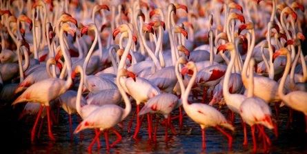 Wild animals are attracted to the small mounds of salt and clay, which they use as natural salt licks. During the wet season, certain parts of the pan fill up with water, attracting flocks of flamingoes, as they use Etosha Pan as a breeding spot. At times there are around one million flamingoes in the pan.