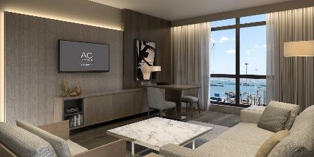 Other features include the AC Library, a quiet space lined with interesting reading material, tucked away from the buzz. The fitness centre features state-of-the-art equipment. The hotel further features flexible meeting rooms and a boardroom with 250 square metres of event space, boasting natural light and harbour views.