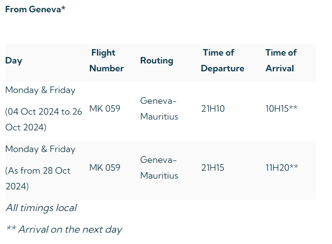 Air Mauritius will resume its seasonal non-stop flights from Mauritius to Geneva for the second consecutive year from October 4 until April 28. The airline will operate twice-weekly flights on Mondays and Fridays. The route will be serviced by the Airbus A330-900neo aircraft.