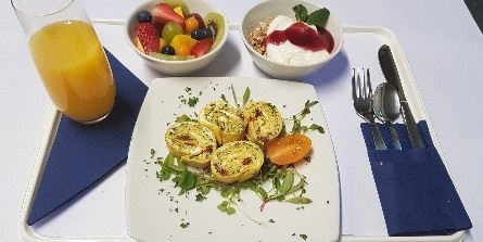 The service includes a welcome drink, hand towel, a cold meal served on crockery, branded silverware on a tray, a choice of white and red Michelangelo Award-winning wines, a 30kg check-in baggage allowance and lounge access at OR Tambo.