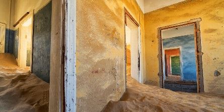 Kolmanskop was originally a diamond mining village, but was abandoned when the diamonds were exhausted.