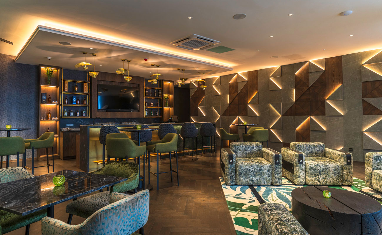Amenities include a rooftop bar overlooking the city, a saltwater infinity pool, a full-service spa and wellness centre, a modern fitness facility, sports courts, a 21-seat private cinema, a four-lane bowling alley, a games lounge and a library. Dining is central to the experience with four restaurants serving Afro-Asian fusion, pan-European and Mediterranean-inspired menus alongside teppanyaki cuisine.