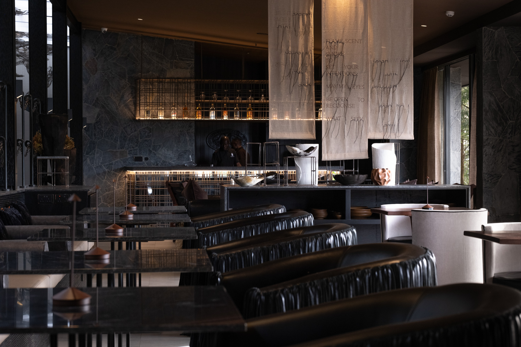 The refurbishment aimed to combine contemporary design with Ugandan heritage using materials such as polished concrete, eucalyptus timber beams, woven crafts and glass. The property now features minimalist architecture and interiors designed to blend with its forest setting.