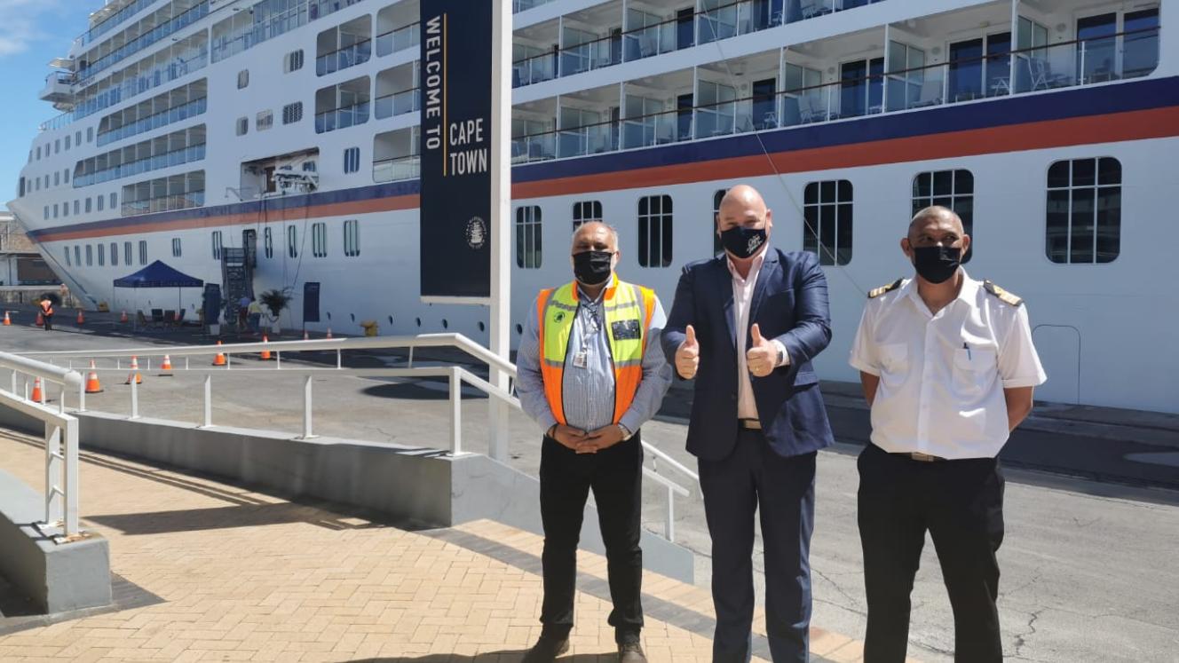 Vos was at the Port of Cape Town yesterday to welcome the TUI group’s MS Europa cruise ship. En-route from Namibia, the 230 passengers heard they would need to disembark in Cape Town, get tested for COVID-19 and fly back home.