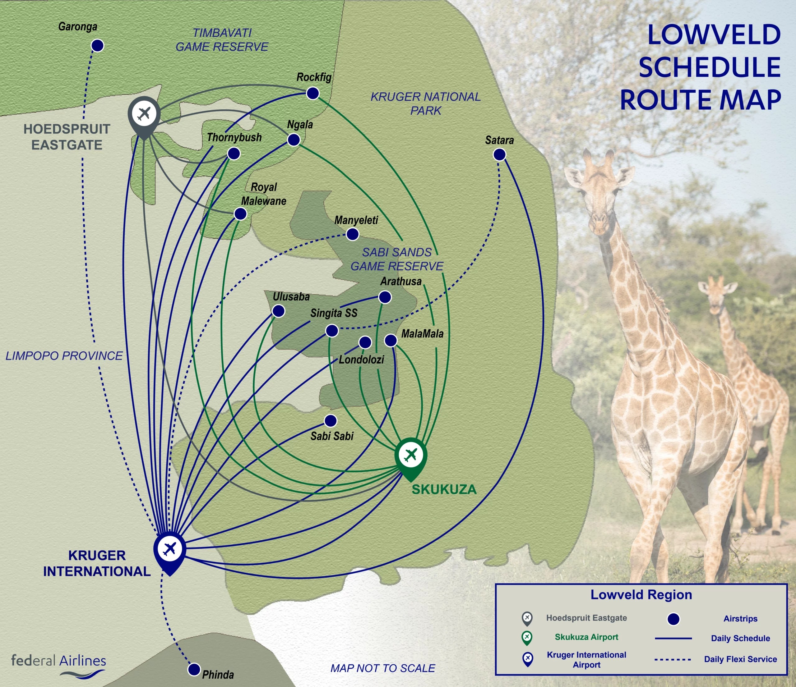 FedAir’s Lowveld schedule route map. Source: FedAir