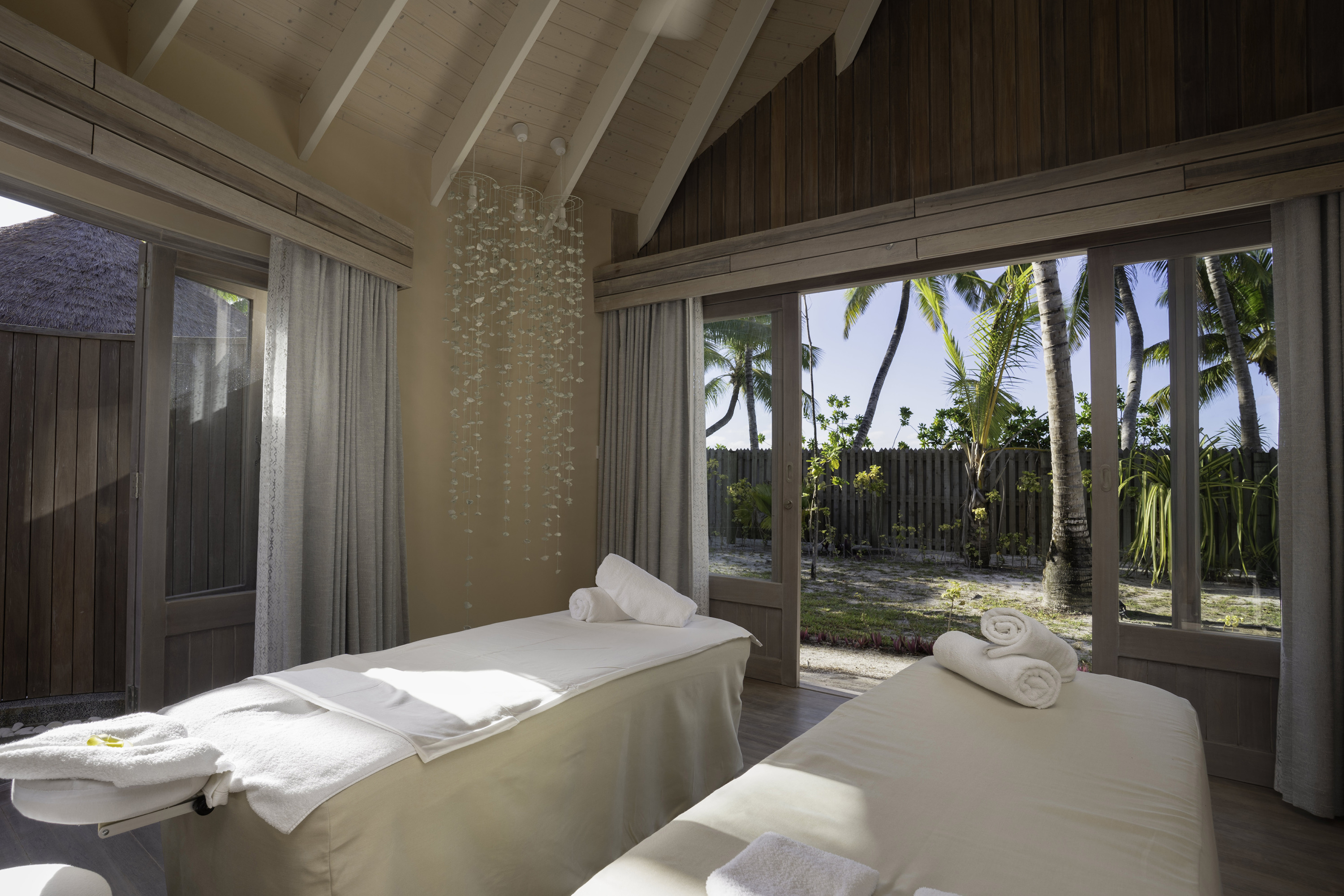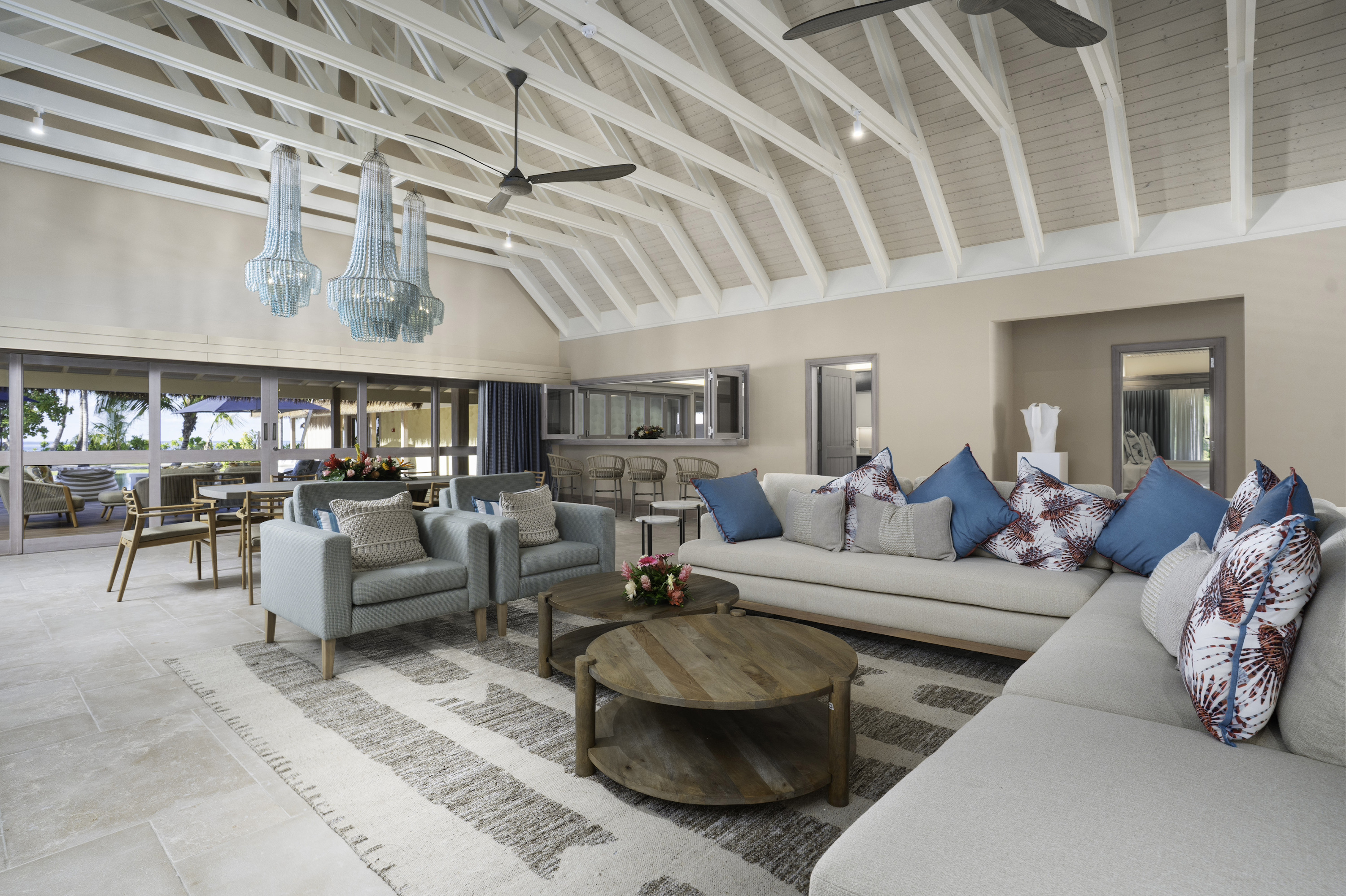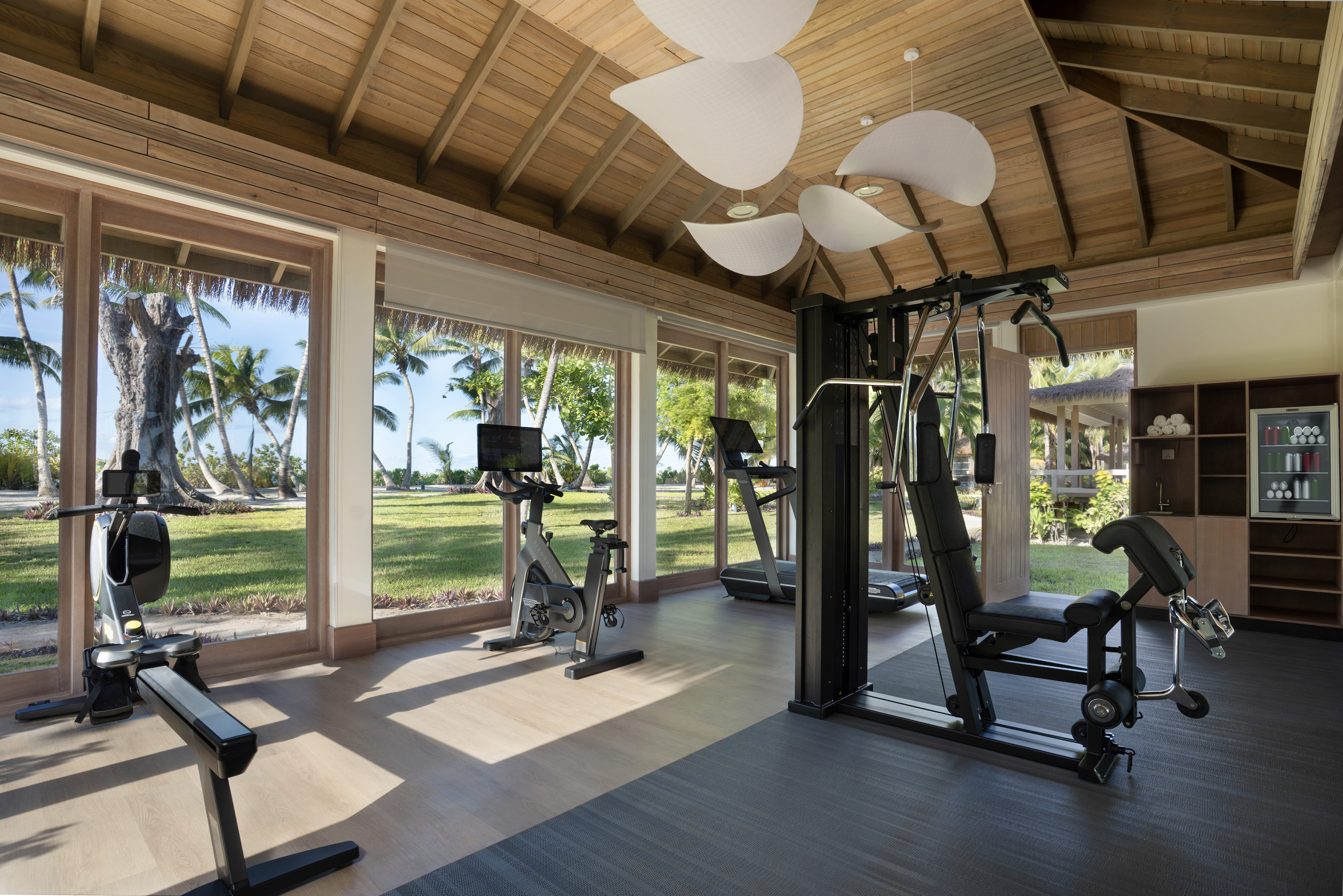 Located on the north side of the island with ocean views, the villa is designed for families, groups and private-use stays. It includes a private gym and spa treatment room allowing guests to use wellness and fitness facilities within the villa.