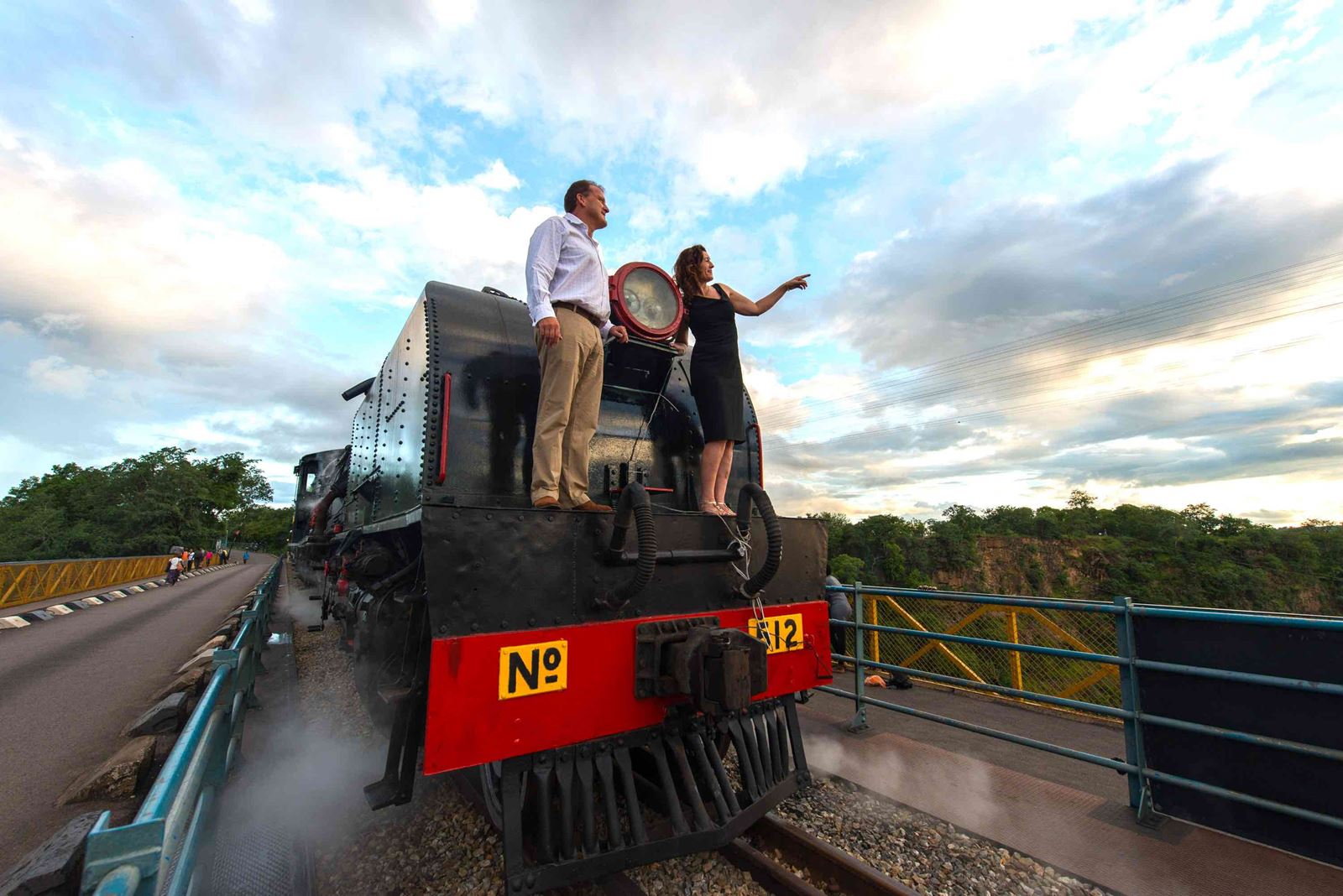 Travel by rail to the Victoria Falls Bridge, to enjoy a sundowner.