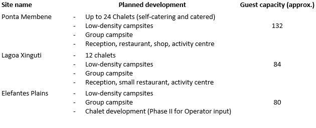 The National Administration for Conservation Areas (ANAC) hereby invites Expressions of Interest (EoIs) from operators, companies, joint-venture partnerships and others that would like to apply to operate the following:
