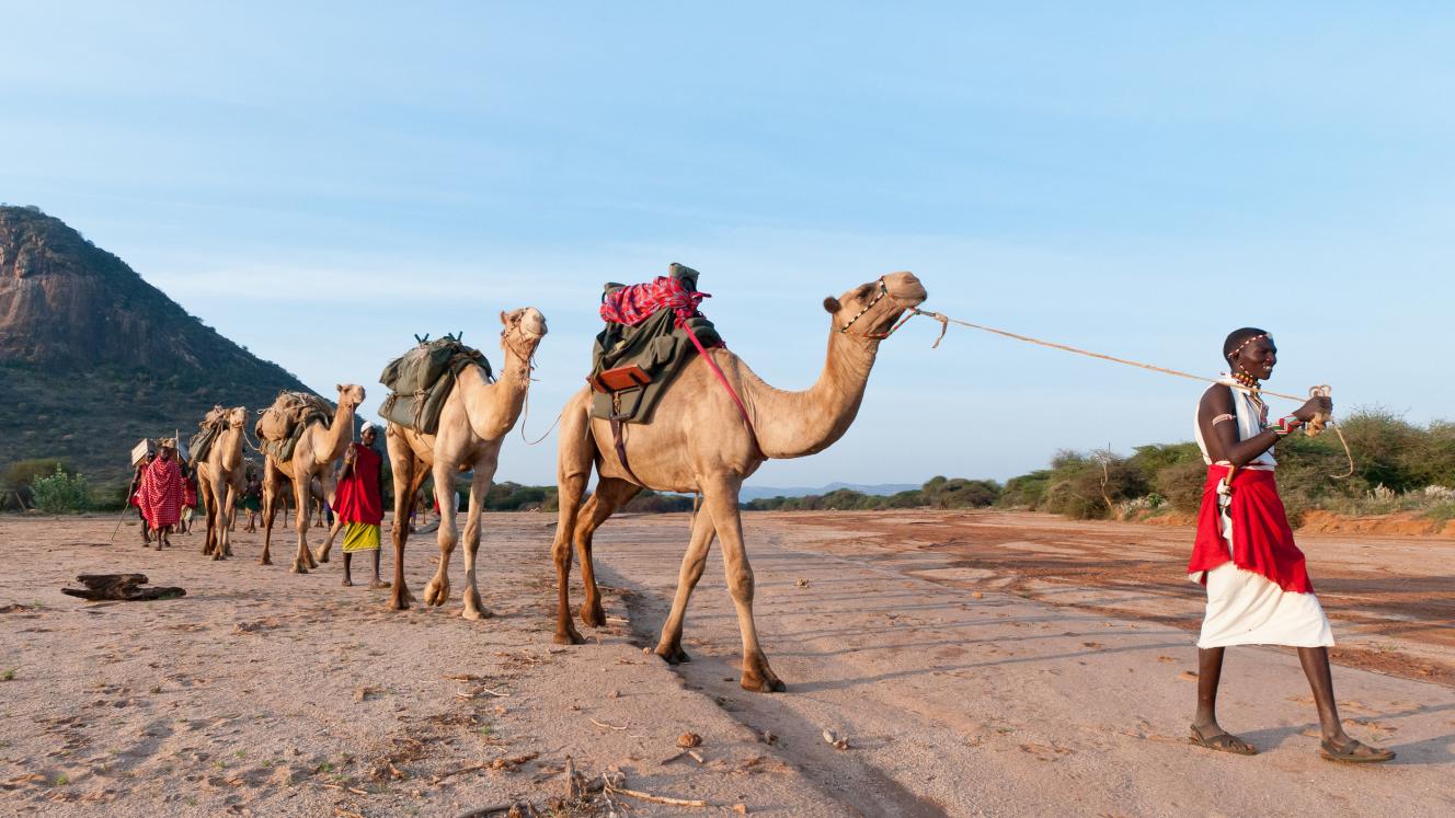 Walking safaris supported by camels
