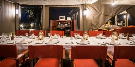 The Private Wing comprises eight tents that overlook a small spring surrounded by trees, and can accommodate a maximum of 16 guests. Each tent has been fitted with an electronic safe, solar showers, flushing toilets and bath amenities.
