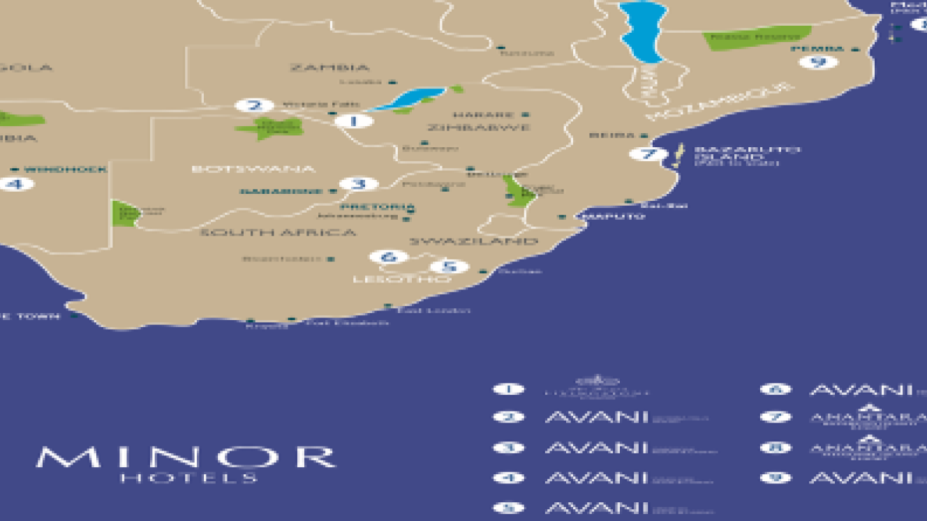As depicted on the map, Minor Hotels lays claim to nine properties in Southern Africa across the Anantara and AVANI brands.