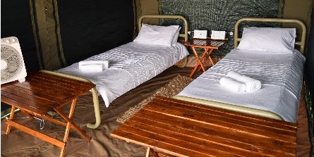 The units are comfortable walk-in tents equipped with one or two single beds, with comfortable bedding, bedside table, plug points, towels and amenities. The rooftop extends to offer a shaded veranda with camp chairs to enjoy sunrises or sunsets from the privacy of the guests’ tent.