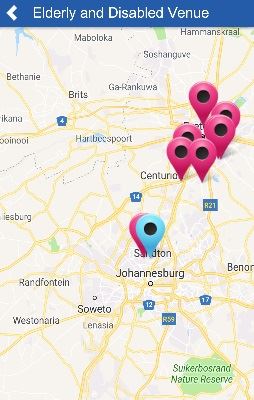 Elderly and Disabled venue filter applied to Choosy Loc8or.