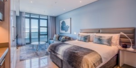 The 140-apartment property is near the Umhlanga Pier and Lighthouse (an upmarket mall) and overlooks the coastline. The apartments are a mix of executive suites, and one-, two- and three-bedroom apartments, each with a fully equipped kitchen and living area.