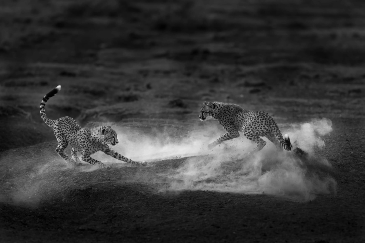 Anna Anthony’s ‘Dusty Duo’ celebrates the childlike delight with which two cheetah siblings’ play-fight on the dusty plains of Kicheche Busch Camp in Kenya.