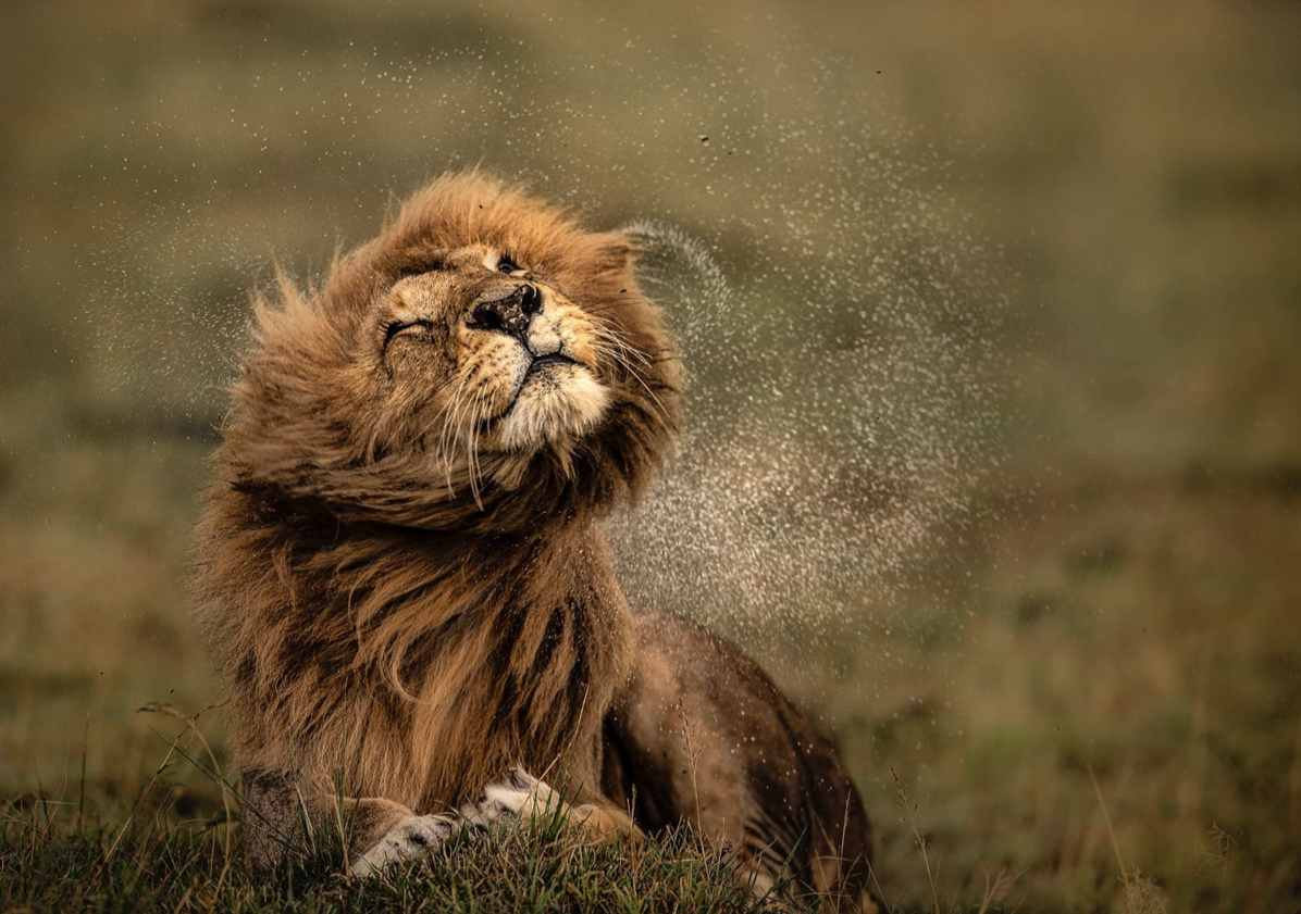 The third photograph shows. Trai Afield’s male lion waking up and shaking the afternoon raindrops from his mane, causing a tiny storm around him is aptly titled ‘Microclimate’. The photo was taken at Serian The Original in Kenya.
