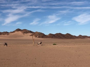 Sent in by Francois Collin, currently a guest of Rhythm Africa Tours and Safaris, the picture features two oryx against the stark background of the Namib Desert.