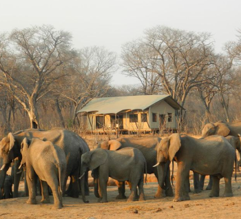 The herd of elephants were visiting a camp in Hwange National Park in Zimbabwe.