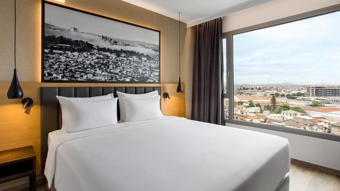 Radisson Serviced Apartments Antananarivo City Center has 56 spacious and bright studio apartments, filled with natural light and views of the surrounding hills. The in-room features include a kitchenette, mini fridge and flatscreen TV. Facilities include a fitness room, a restaurant offering French and Asian fusion cuisine, and a rooftop lounge that can host private events.