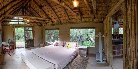 Shindzela faces a small watering hole and is home to over 40 mammal species, including Africa’s Big Five, hyena, jackal, giraffe, hippo, wild dog, zebra, kudu and impala. There are also over 350 bird species recorded in the reserve.