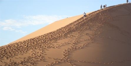 Dune 45 is named for its proximity to Sesriem Gate. It is 45km from the gate, along a paved road and is easily reached using a 2×4 vehicle. Visitors are recommended to climb Dune 45 early in the day to watch the sun rise over the vlei from the top of the dune. The dune is 85 metres high.