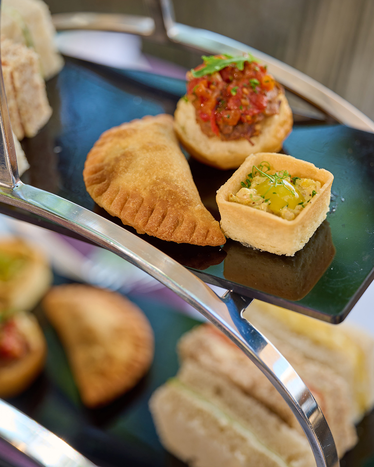 Menu highlights include hazelnut and blackberry financier, black forest opera, citrus and blueberry tart, cassis and white chocolate vacherin and a selection of savoury items such as smoked salmon and guacamole sliders, chicken coronation tartlets and beef short rib amagwinya.