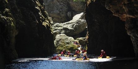 Clients in the Storms River area, they can challenge themselves with a black water tube expedition down the river. The name of this experience is derived from the dark colour of the Storms River water, which is caused by tannin leaching out of plant matter much like tea. Tubing trips take place in the Plaatbos Nature Reserve and Tsitsikamma National Park.