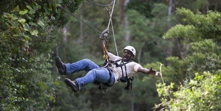 • Acrobranch: being strapped into a harness and attempting a tree obstacle course, swinging from tree to tree.