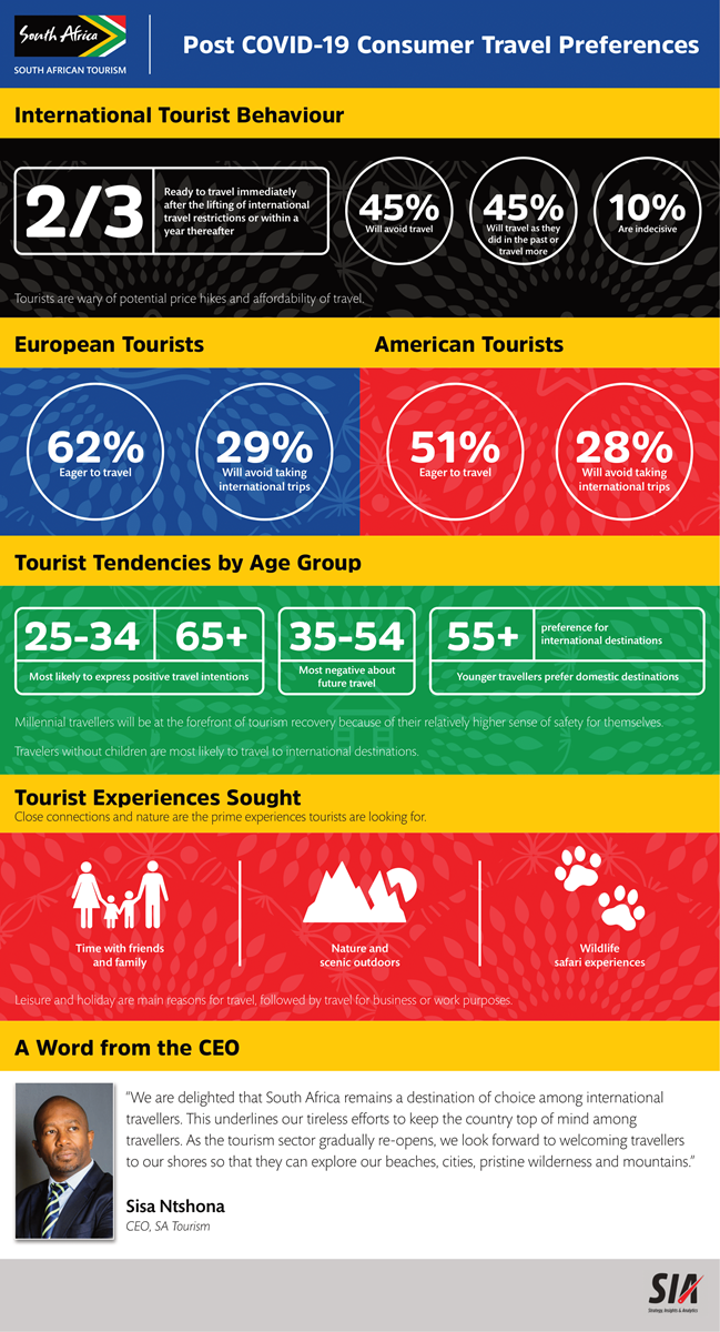 Tourlane, an online travel website, said South Africa was the most popular destination for travellers post-COVID-19 and the key reasons for wanting to visit South Africa were safari, visiting friends and relatives and scenery.