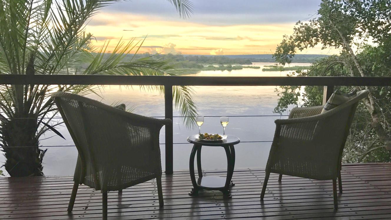 The floor-to-ceiling glass doors allow guests uninterrupted views of the Zambezi River. Each River suite also features two bathrooms on a split level and a sitting area.