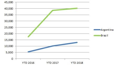 Notably, the South American market continues to grow, seeing a 7% increase this year, translating to 4 487 more visitors in 2018 than in 2017. Brazil has grown 4%, while Argentina has risen 28% to 12 996 visitors this year to date.