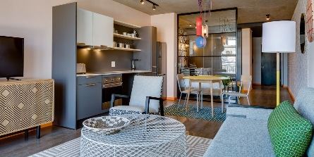 Stock Exchange comprises 33 apartment-style rooms – Studios, Studio Deluxe units and Two-Bedroom Apartments. The rooms have been split into three distinct themes, Urban Jungle, Urban Art and Urban Pattern, conceptualised, designed and implemented by Tracy Lee Lynch and her team at Studio Leelynch.
