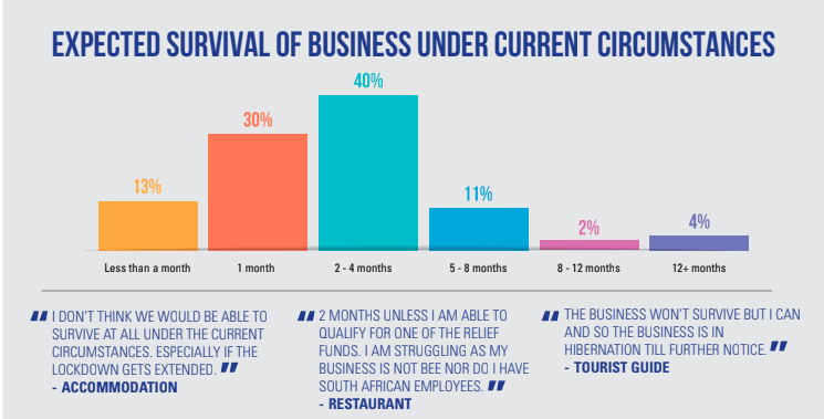 CTT’s research has shown that 43% of tourism businesses do not have the resources to survive longer that two months under the current lockdown conditions, with only 4% of businesses capable of surviving a year.